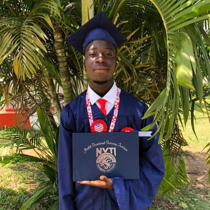 This year, a second member of our alumni association obtained an Associate Degree. Ephraim Neblett from the Class of 2017, graduated from LICOSSES Teacher Training College, adding to his Monrovia Vocational Training Institute (MVTI) qualification as a refrigerator technician.